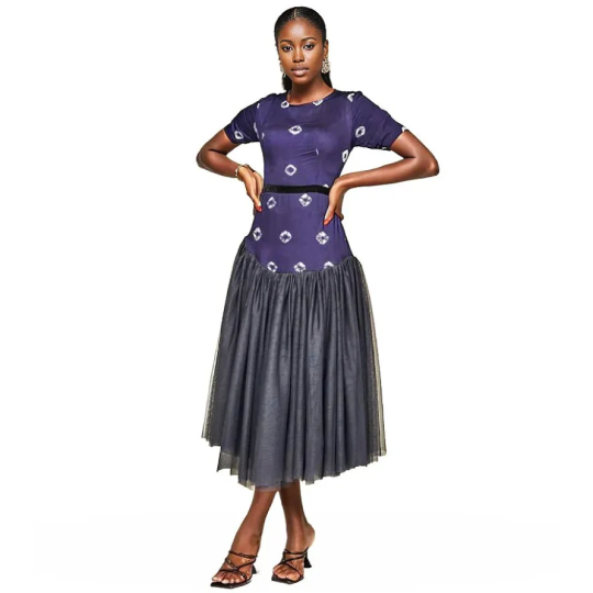 Yeside Laguda Indigo Tulle Dress with half sleeves